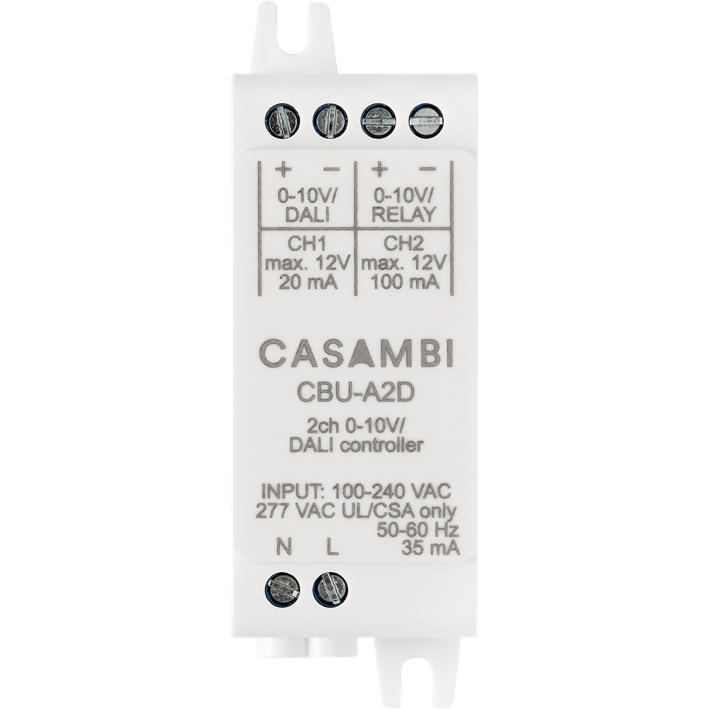 Der CBU-A2D ist ein Casambi-kompatibler 2-Kanal-0-10V / DALI-Controller. Die CBU-A2D verfügt über einen universellen Eingangsspannungsbereich von 100 bis 277 VAC. Kann einen oder zwei 0-10V-gesteuerte LED-Antriebe oder einen LED-Treiber mit einstellbarem Weiß über zwei 0-10V-Steuereingänge steuern. Die CBU-A2D kann auch in einem DALI-Modus konfiguriert werden, in dem sie zur Anwesenheitserkennung und / oder zur Tageslichtkompensation an einen DALI-LED-Treiber oder einen DALI-Sensor angeschlossen werden kann.
